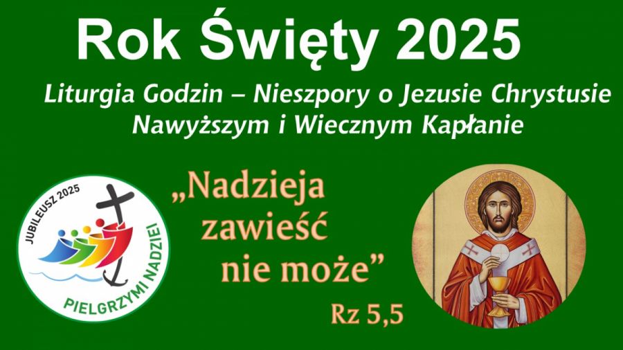 W czwartek 12 czerwca przypadło święto Najwyższego i Wiecznego Kapłana ustanowione przez papieża Benedykta XVI, jako dziękczynienie za Sakrament Kapłaństwa. Te dwa czwartki – Czwartek Jezusa Chrystusa Najwyższego i Wiecznego Kaplana i następny czwartek Najświętszego Ciała i Krwi Pańskiej – Boże Ciało, przypominają nam Wielki Czwartek i te dwa sakramenty ustanowione przez Chrystusa. Na początku czwartkowej adoracji modliliśmy się śpiewając Nieszpory w intencji papieża Leona XIV, naszego arcybiskupa z racji minionej również rocznicy Sakry Biskupiej, kapłanów naszej parafii i nowo wyświęconego księdza Szymona Reinke oraz i naszego nowego wikariusza ks. Kamila Romanowskiego. Niżej można odtworzyć nagranie Nieszporów.