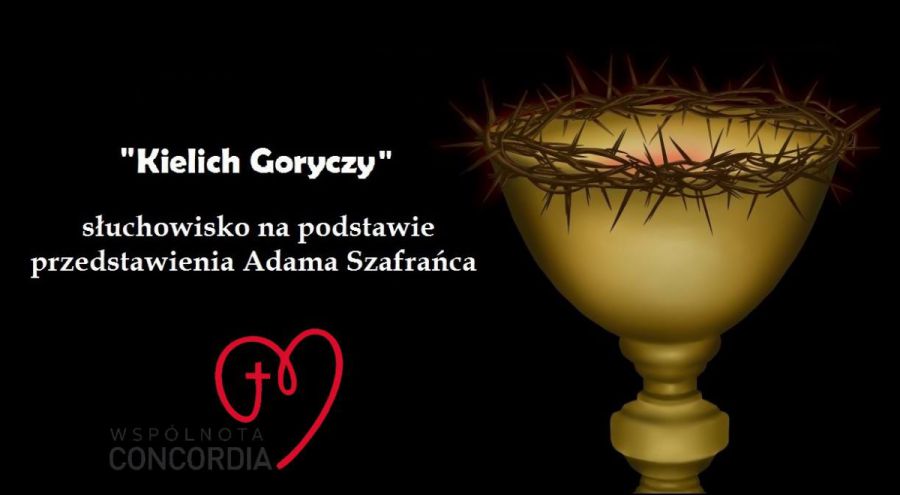Jest nam bardzo miło przekazać Wam dzieło naszej Wpónoty Młodzieżowej Concordia. Słuchowisko pt. Kielich goryczy, na podstawie scenariusza Adama Szafrańca. Według naszych pierwotnych planów mieliście je oglądać w minioną sobotę. Niestety w tym roku nie możemy pokazać wam tajemnicy Zmartwychwstania "na żywo". Nie poddajemy się jednak! Nasze misterium możecie ODSŁUCHAĆ! Musieliśmy je nieco zmodyfikować, ale ostateczny efekt nawet nas samych zaskoczył...