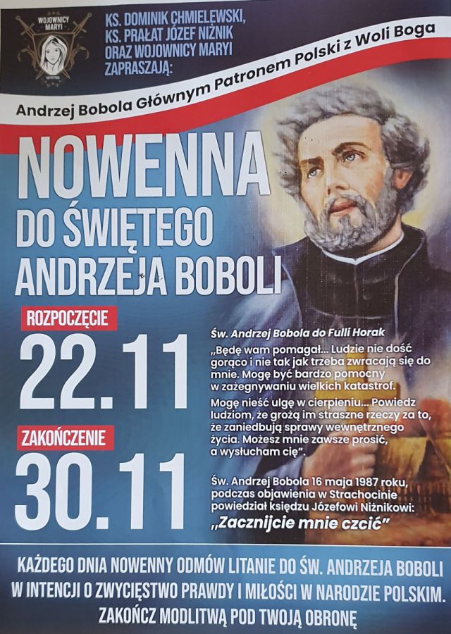 Święty Andrzeju Bobolo módl się za nami! Święty Andrzeju Bobolo, oręduj za nami u Boga!
