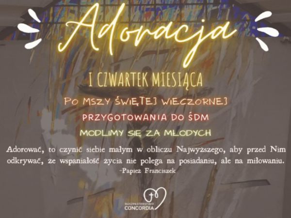 W Pierwszy Czwartek Miesiąca adorację Najświętszego Sakramentu przygotowała młodzież z Concordii w ramach Dekanalnego Oratorium Młodych /DOM/ i w ramach przygotowań do Światowych Dni Młodzieży w Lizbonie 2023 roku. Piękna Adoracja, głębokie treści śpiew. To był bardzo dobry czas na medytację i adorację Naszego Pana. Bóg zapłać Concordio! A niżej można przypomnieć sobie treści Adoracji...